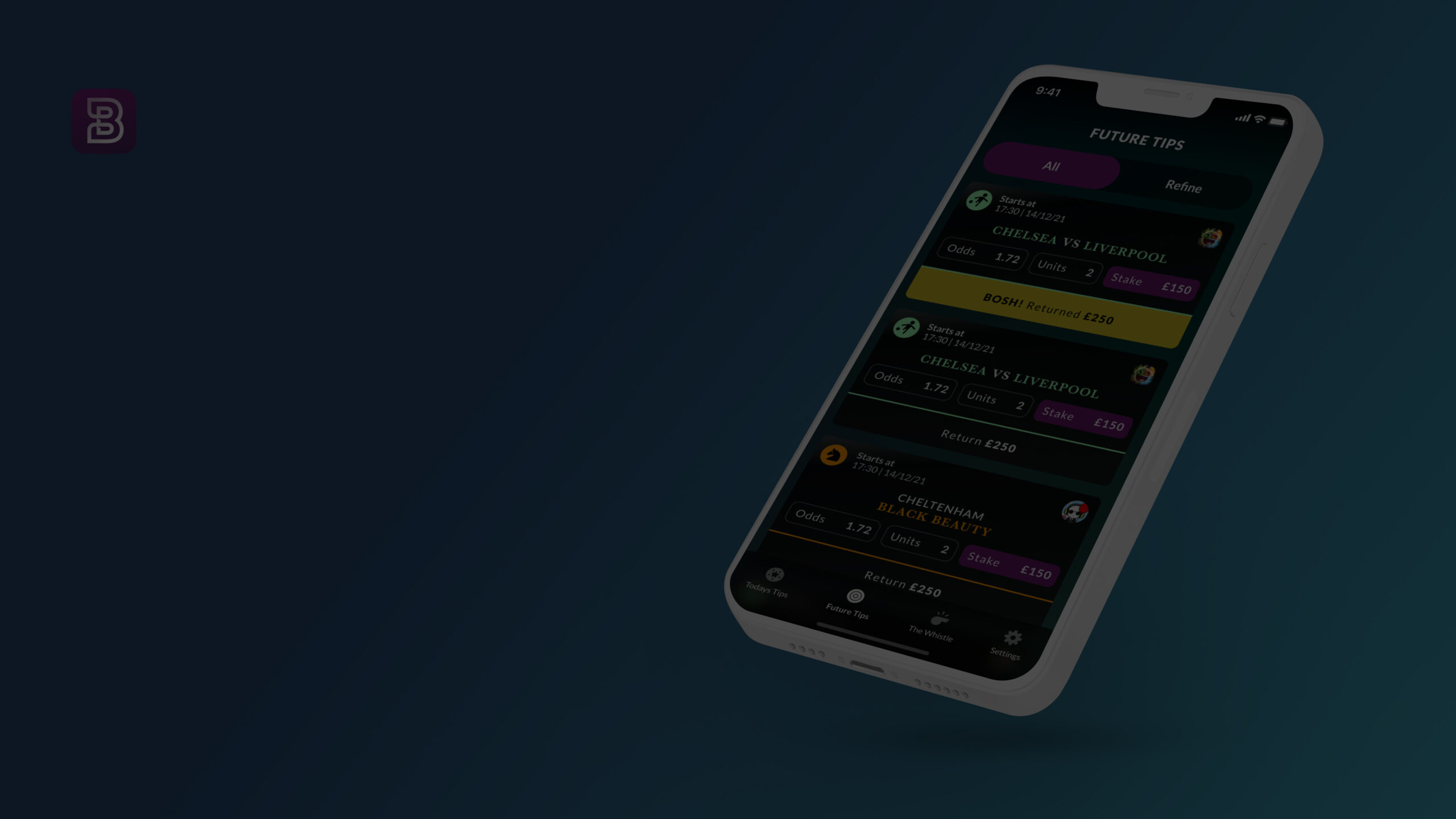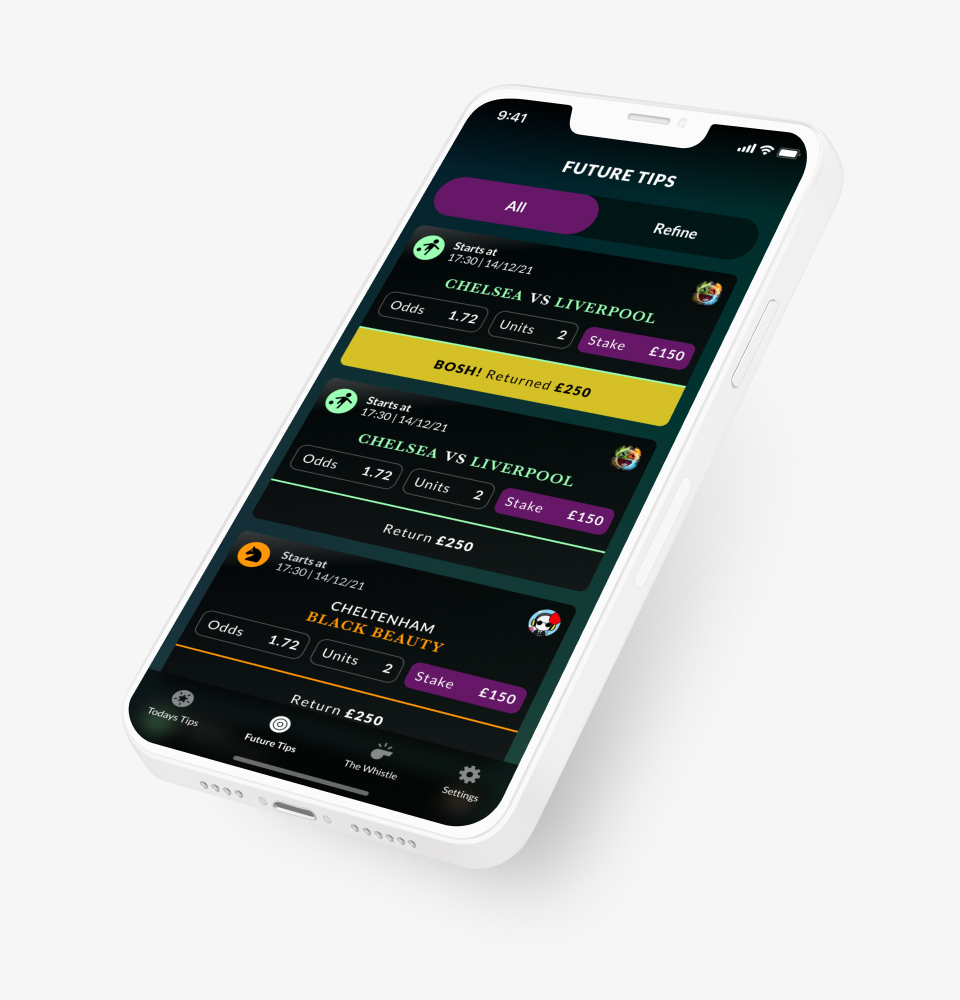 I conceived, designed, and delivered BoshBets end-to-end, from initial product strategy and UX/UI design through to App Store submission, launch, and growth. This included defining the business model, designing the full mobile experience, and building the marketing and growth assets needed to acquire users.