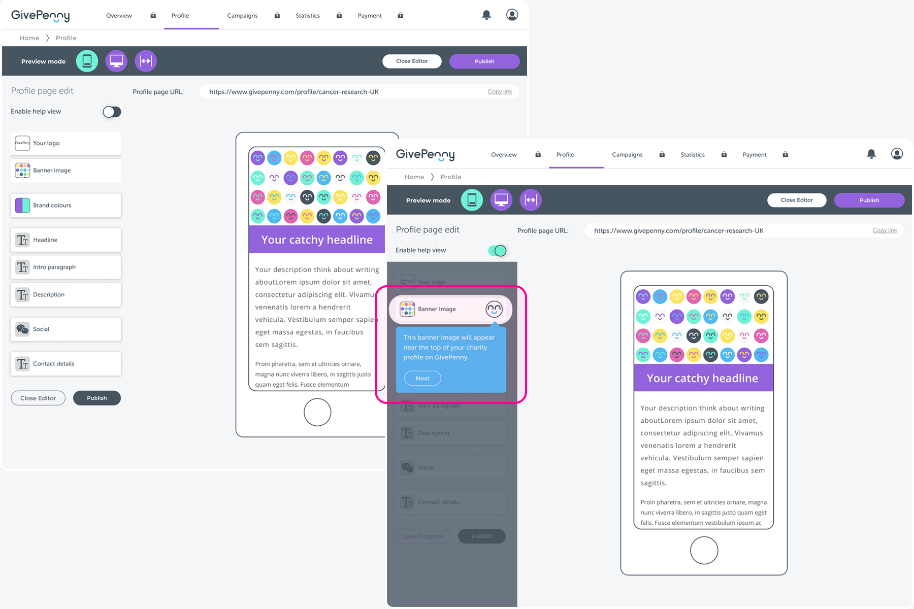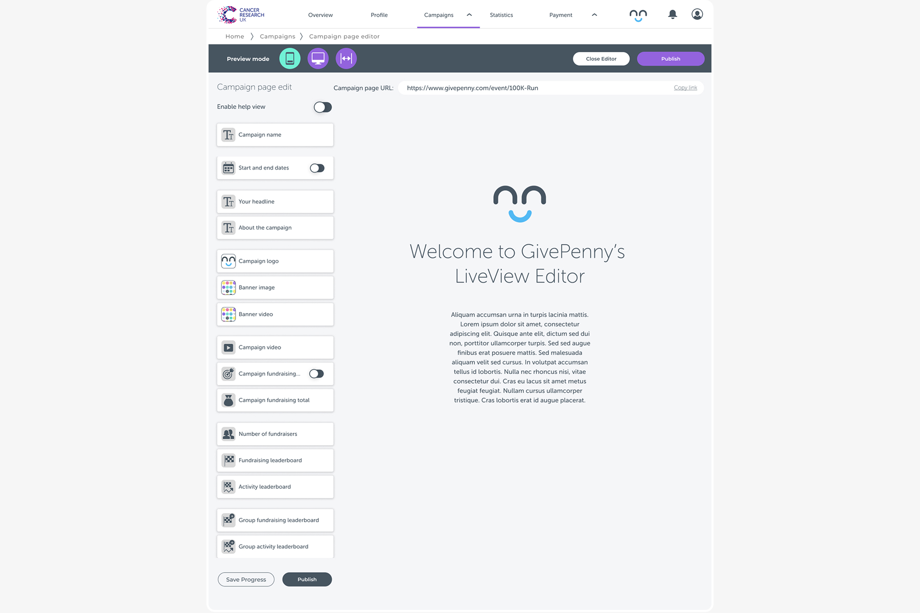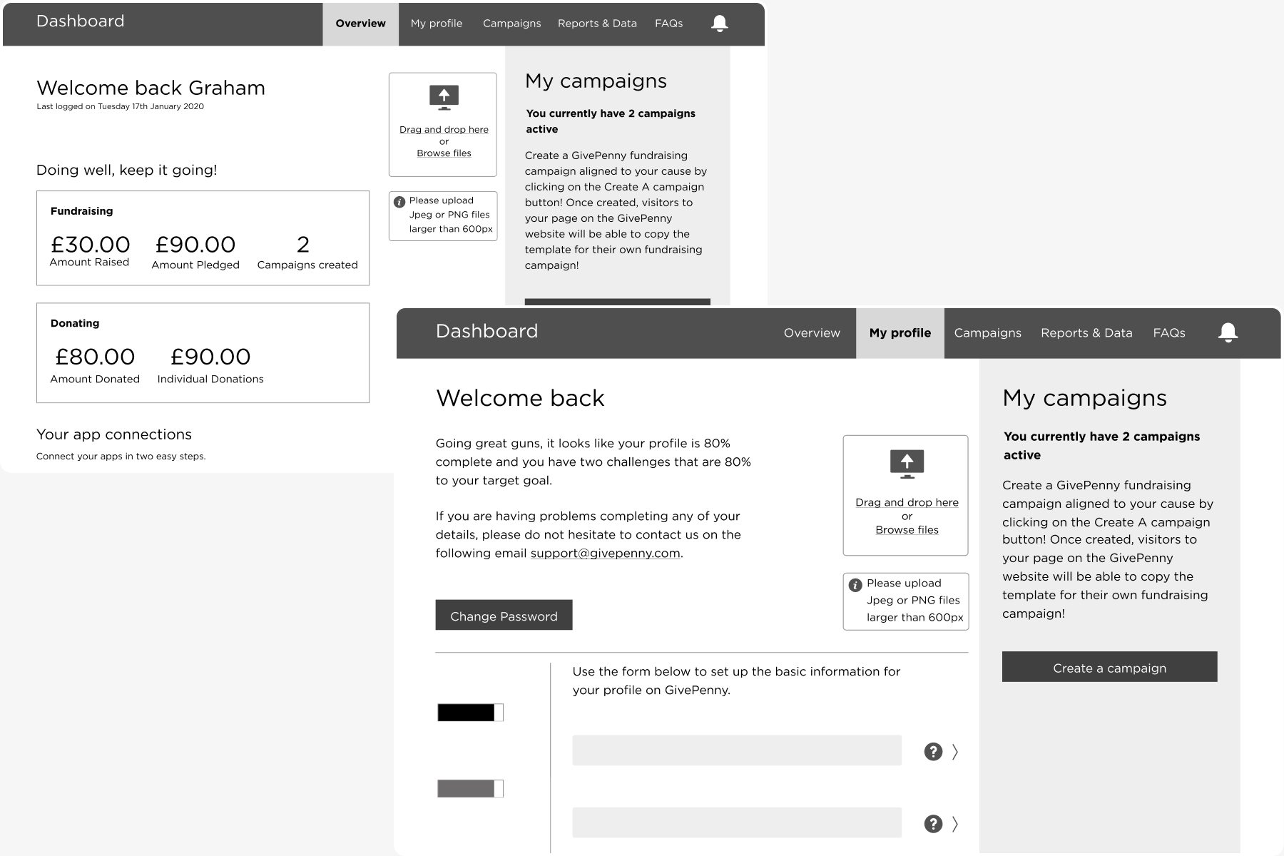 GivePenny was successfully acquiring users, but many fundraisers failed to progress beyond initial setup. Campaign creation felt complex and unintuitive, leading to low retention and a high volume of support requests.